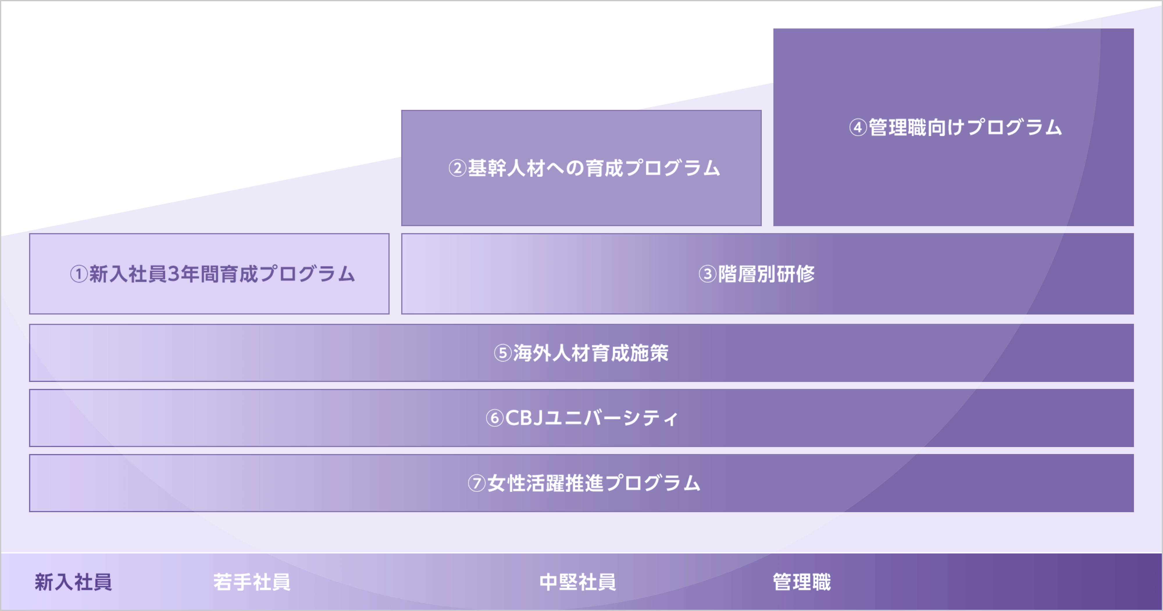 役割に応じたスキルや考え方を身につけるための研修です。昇格時に行います。