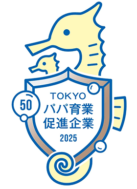 男性社員の育児休業取得率を一定割合達成し、今後も継続して取得を促進する企業として、「TOKYOパパ育業促進企業」に登録しています。